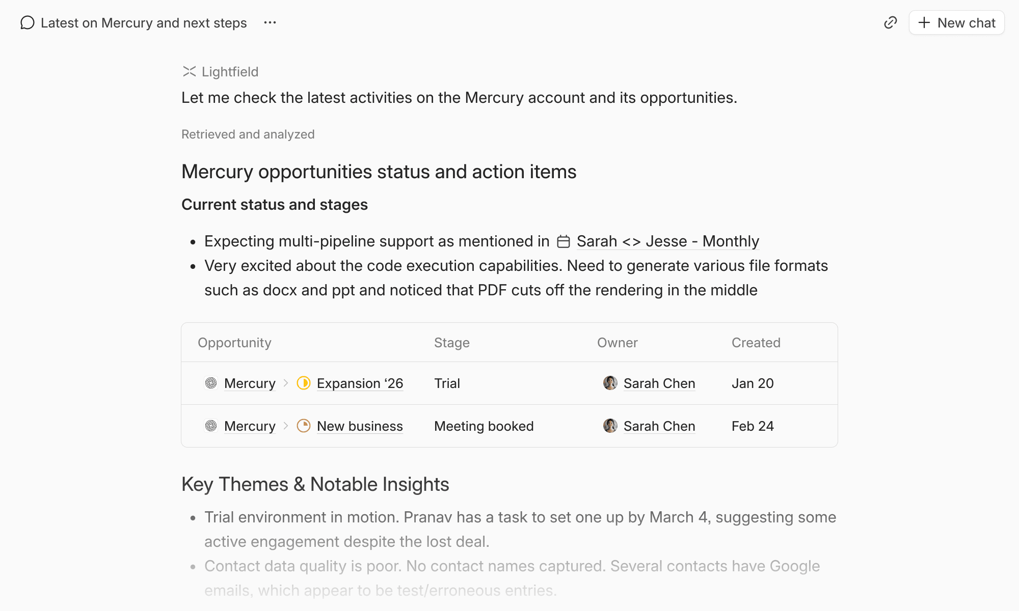 This week, we landed major improvements to the data model for contacts and accounts— which allow them to more flexibly track activity related to specific domains and email addresses. We’ve also made iterative improvements to the chat experience, with more on the way.