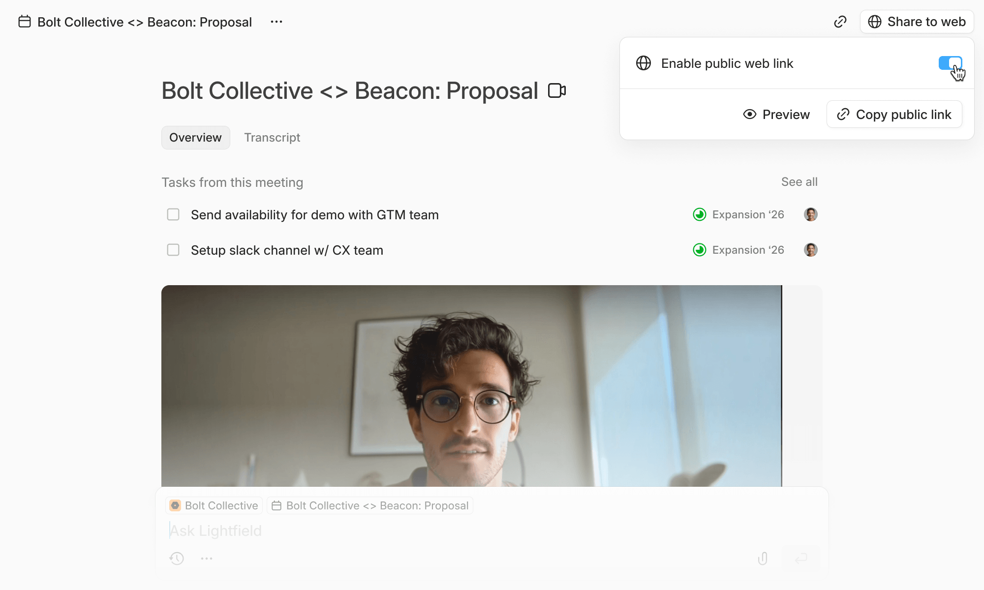 You can now enable a public view of your Lightfield meetings to share outside of your workspace.
