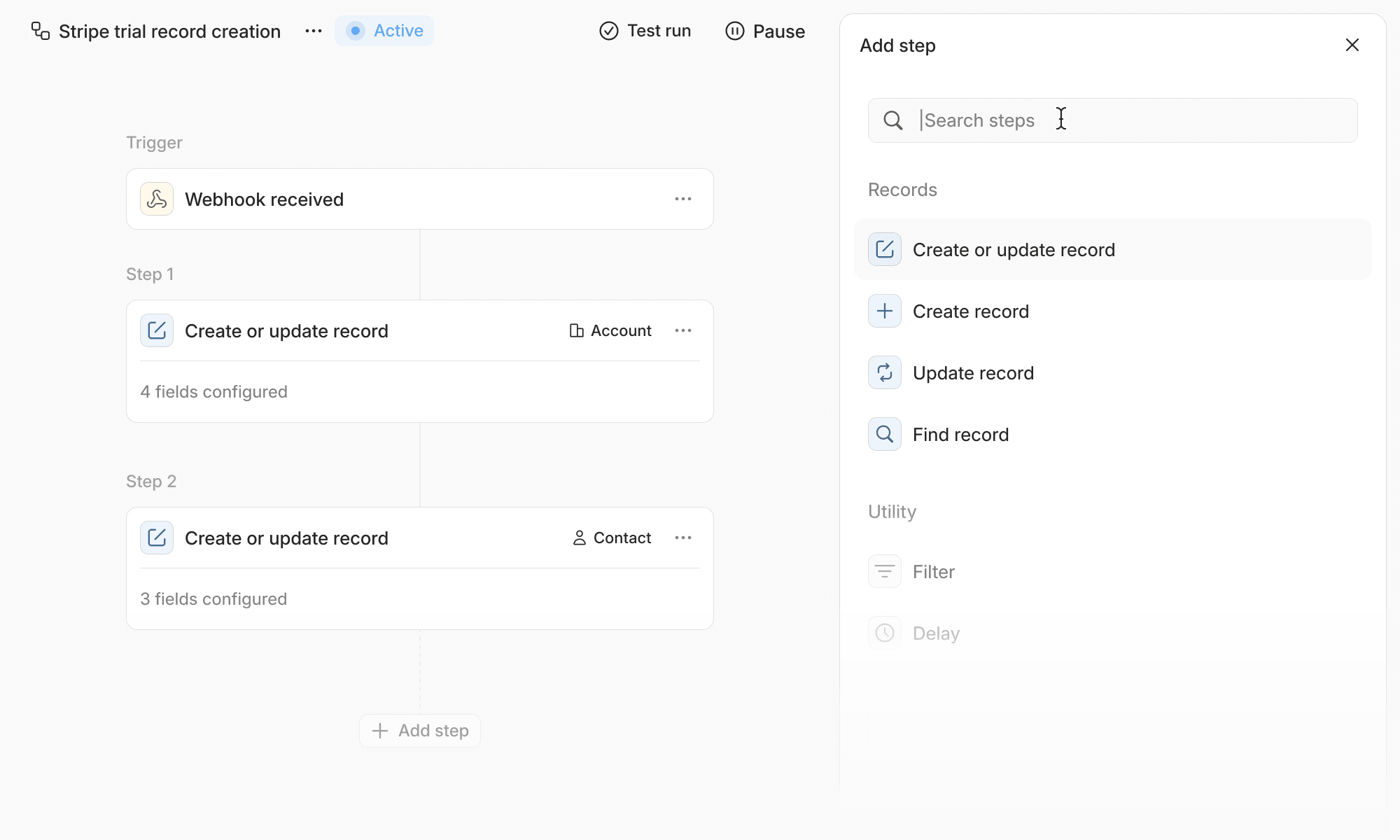 This week we launched the ability to create records in Lightfield via webhook triggers. This is an early release, so we’d love if you could try it out and share any feedback you have.
